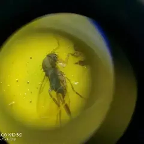 2、鸡蛋打散,放入虾仁搅拌均匀;