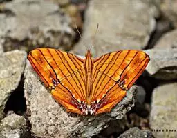 苎麻珍蝶是翅橙黄色或褐色,外缘有宽的黑色带,黑色带外缘锯齿形,翅脉纹黄褐色或褐色,前翅常有黑色斑纹,…