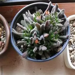 若歌诗是景天科青锁龙属的多肉植物。植株易丛生,茎淡绿色,细柱状,…