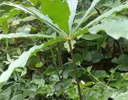 叶常单1,叶柄圆柱形,粉绿色,长30-50厘米,下部3/4鞘筒状,鞘端斜截形;叶片鸟足状分裂,裂片13-19,有时更少或更多,倒披针形、长圆形、线状长圆形,基部楔形,先端骤狭渐尖,全缘,暗绿色,背面淡绿色,中裂片无柄或具长15毫米的短柄,长3-15厘米,宽0.7-5.8厘米,比侧裂片几短1/2;侧裂片长7.7-24.2(-31)厘米,宽(0.7-)2-6.5厘米,向外渐小,排列成蝎尾状,间距0.5-1.5,厘米。