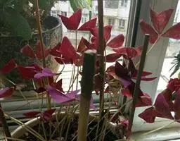 多年生草本,地下块茎粗大。叶丛生,具长柄,掌状复叶,小叶 3枚,无柄,倒三角形,深紫色。紫叶酢浆草…