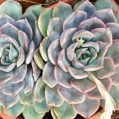 蓝石莲是景天科、拟石莲花属的多肉植物。茎部粗壮,成熟植株茎部木质化。叶片莲座型密集排列,株径不会很大,…