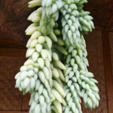 七宝树锦为菊科千里光属多年生肉质草本,是七宝树的锦斑品种,在春秋生长,夏季高温半休眠。