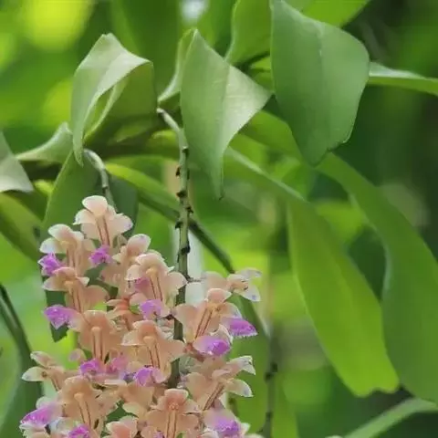 束花石斛是兰科石斛属植物。茎粗厚,肉质,下垂或弯垂,圆柱形,不分枝,具多节。叶二列,互生于整个茎上,…