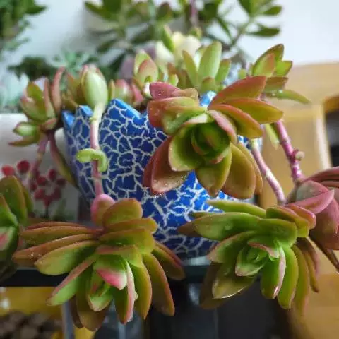 灯美人是景天科的园艺品种,多肉植物。叶片近柱状,丛生,在日照时间长、温差大的环境下会呈现橙粉色。