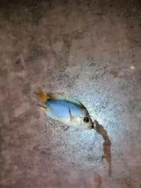 马夫鱼。成鱼体甚侧扁,背缘高而隆起,略呈三角形。背鳍鳍棘11根,第四鳍棘延长呈鞭状,鳍膜亦随之延长…