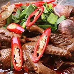 煮鸭的汤不 要一次用完,在吃的过程中,用来补充锅内汤汁。此火锅也可用鸡汤、骨头汤制作。若喜食辣者,可以加入干辣椒节,其味更烈。