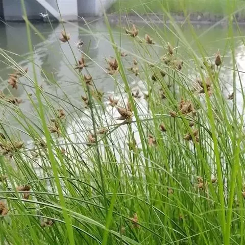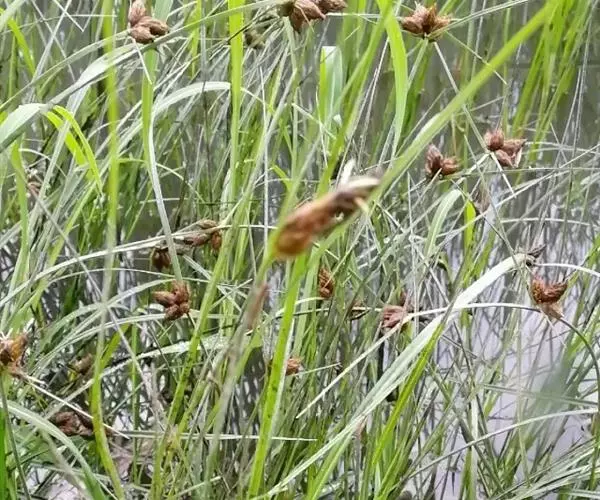 扁秆荆三棱(学名:Bolboschoenus planicalmis (F. Schmidt) Egorova)是莎草科,三棱草属具匍匐根状茎和块茎。秆高可达100厘米,三棱形,叶平张,具长鞘。苞片叶状,通常长于花序,边缘粗糙;花药线形,药隔稍突出;小坚果倒卵形,扁,5-9月开花结果。