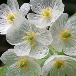 花序顶生,具总梗,聚伞花序或伞形状花序,总梗无毛或疏被柔毛;花3数,辐射对称,具花梗;萼片6,2轮排列;花瓣6,2轮,白色;雄蕊6,与花瓣对生,花药底着,纵裂,花粉外壁明显具刺状纹饰;子房上位,1室,花柱极短或缺,柱头盘状,胚珠2-11。