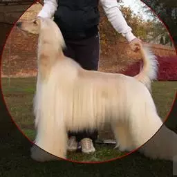 阿富汗猎犬全身披丝绢状的长毛,毛色鲜艳,呈多种颜色,背中线附近毛短,…
