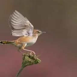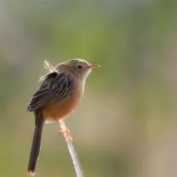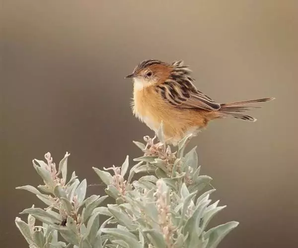 棕扇尾莺是扇尾莺科扇尾莺属的小型鸟类,体长9~11厘米。上体栗棕色具粗著的黑褐色羽干纹和棕白色眉纹,…