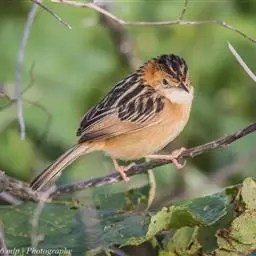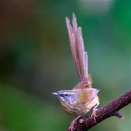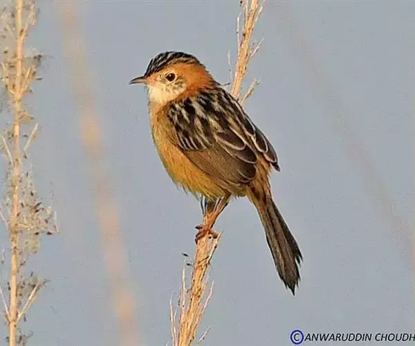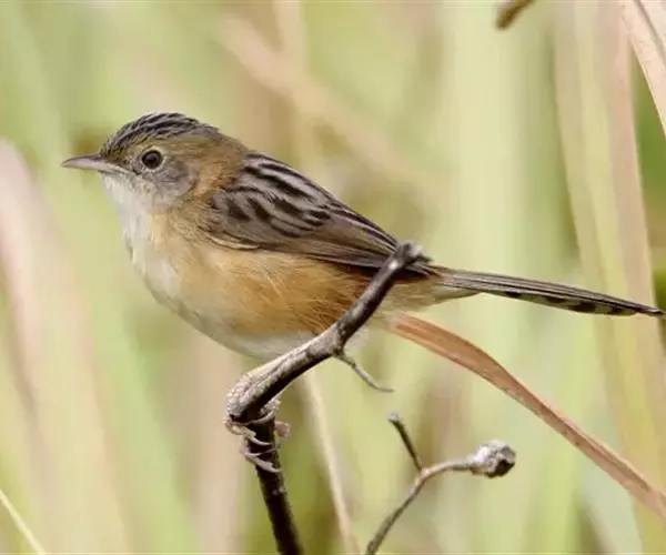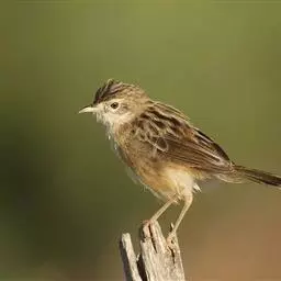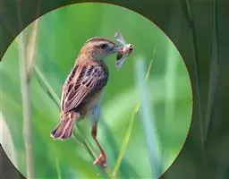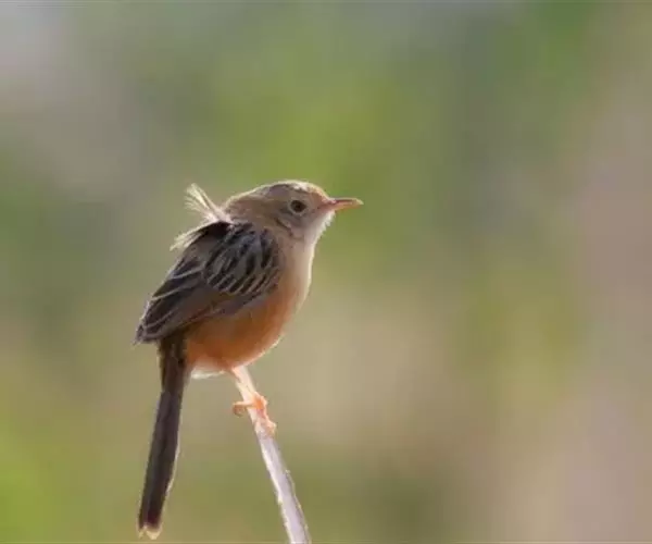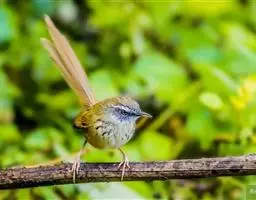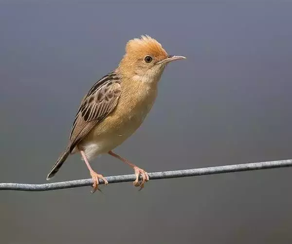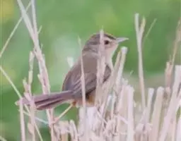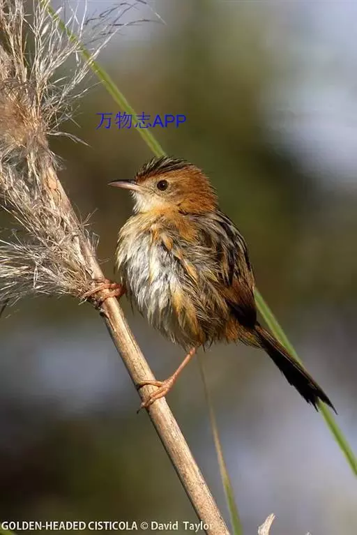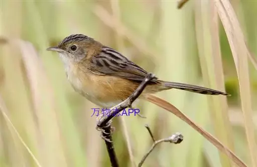 金头扇尾莺体小而具褐色纵纹的莺。嘴细长,略向下弯;翼短,体型娇小,尾长。下体皮黄,喉近白,尾深褐,…