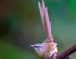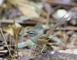 黑喉山鹪莺:体长16厘米,是一种长尾的褐色鹪莺。具明显的白色眉纹及形长的尾。特征为胸具黑色纵纹。…
