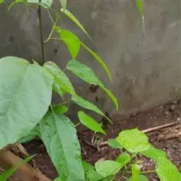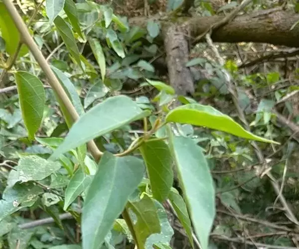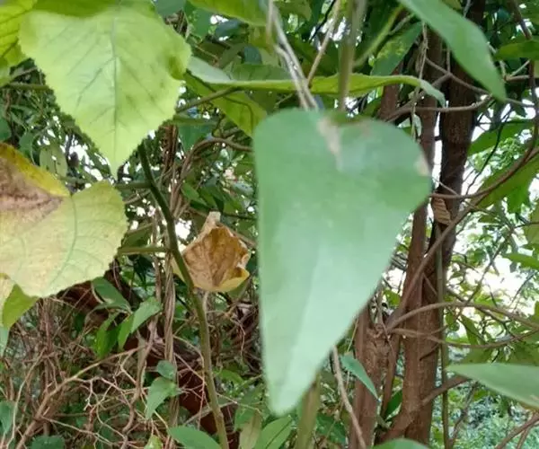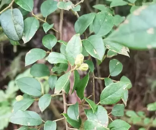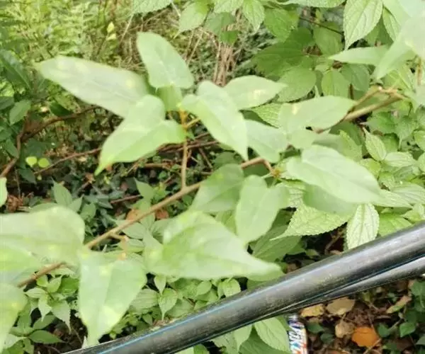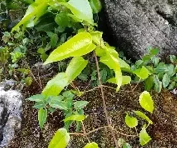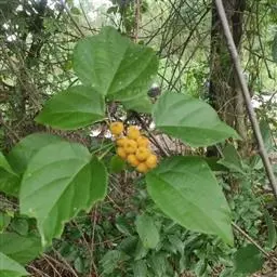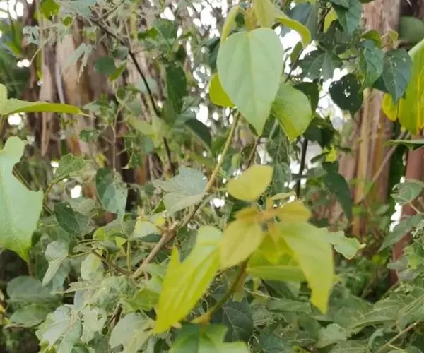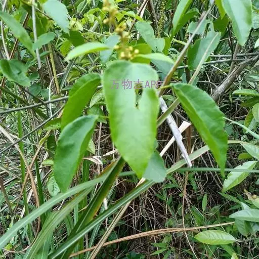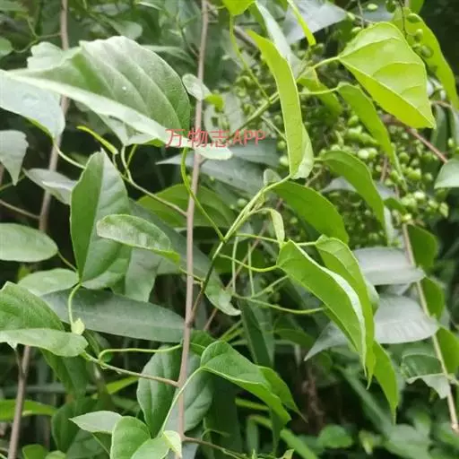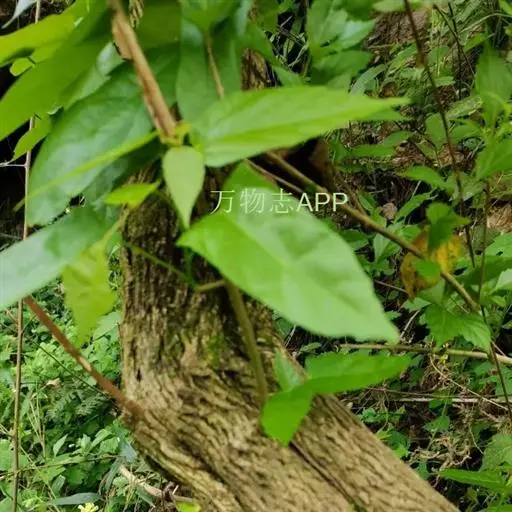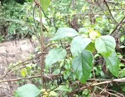 攀缘状灌木;嫩枝、叶柄、花序和花梗均密生黄色星状柔毛;老枝无毛,常有皮孔叶互生,纸质或膜质,卵形或椭圆状卵形,长3.5-8厘米,宽2.5-5厘米,顶端急尖或渐尖,基部楔形或圆形,边全缘或波状,嫩叶两面均被星状柔毛,成长叶仅下面叶脉腋部被毛和散生黄色颗粒状腺体;基出脉3条,有时稍离基,侧脉4-5对;叶柄长2-6厘米。