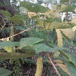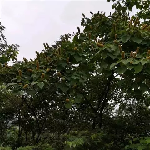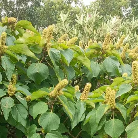 花雌雄异株,总状花序或下部有分枝;雄花序顶生,稀腋生,长5-15厘米;苞片钻状,长约2毫米,密生星状毛,苞腋有花2-5朵;花梗长约4毫米;雄花:花萼裂片3-4,卵状长圆形,长约3毫米,外面被绒毛;雄蕊40-75枚,花丝长约2毫米,花药长圆形,药隔狭。雌花序顶生,长5-8厘米,苞片长三角形;雌花:花梗长约3毫米;花萼裂片5,卵状披针形,长约3.5毫米,外面被绒毛,具颗粒状腺体;花柱2 (-3)枚,柱头长约3毫米,被星状毛,密生羽毛状突起。
