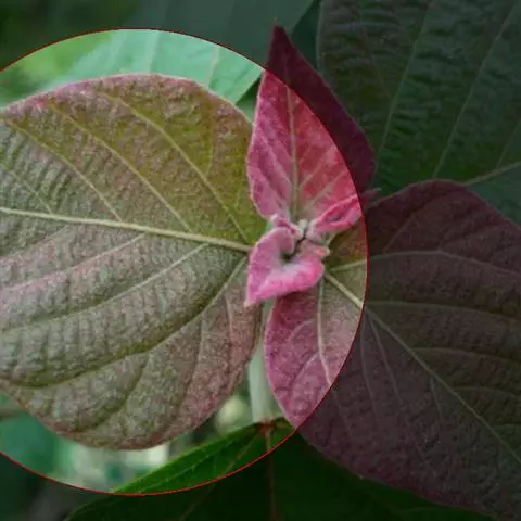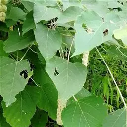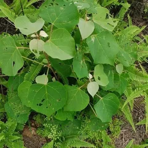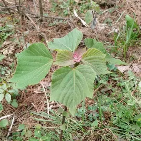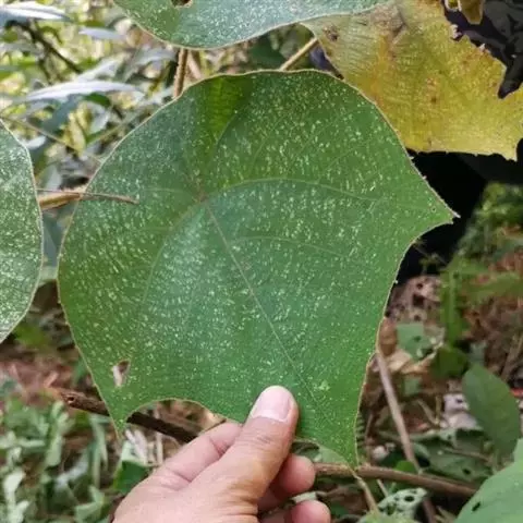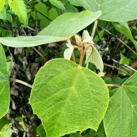 本变种的叶阔心形,长8-19厘米,宽6-13厘米,被柔毛或无毛;雌花序长4-5厘米,粗壮,具花8-12朵;蒴果具2 (-3)个分果爿。花果期5-8月。