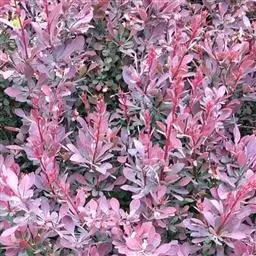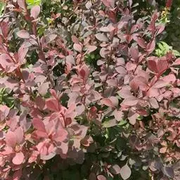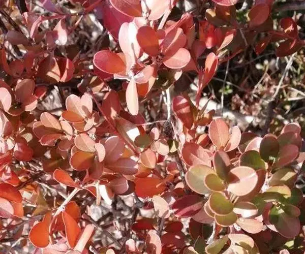 紫叶小檗(学名:Berberis thunbergii var. atropurpurea Chenault),别名:红叶小檗,小檗科、小檗属。原产于中国东北南部、华北及秦岭。多生于海拔1000米左右的林缘或疏林空地。落叶灌木,枝丛生,幼枝紫红色或暗红色,老枝灰棕色或紫褐色。叶小全缘,菱形或倒卵,紫红到鲜红,叶背色稍淡。4月开花,花黄色。果实椭圆形,果熟后艳红美丽。