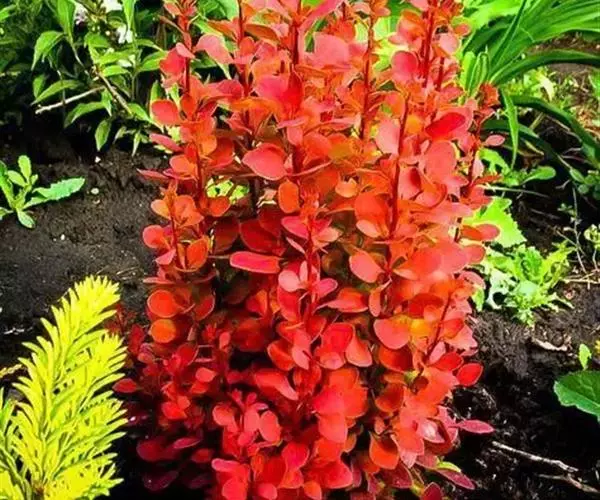 原种(日本小檗)是落叶灌木,一般高约1米,多分枝。枝条开展,具细条棱,幼枝淡红带绿色,无毛,老枝暗红色;茎刺单一,偶3分叉,长5-15毫米;节间长1-1.5厘米。叶薄纸质,倒卵形、匙形或菱状卵形,长1一2厘米,宽5-12毫米,先端骤尖或钝圆,基部狭而呈楔形,全缘,上面绿色,背面灰绿色,中脉微隆起,两面网脉不显,无毛;叶柄长2-8毫米。花2-5朵组成具总梗的伞形花序,或近簇生的伞形花序或无总梗而呈簇生状;花梗长5-10毫米,无毛;小苞片卵状披针形,长约2毫米,带红色;花黄色;外萼片卵状椭圆形,长4-4.5毫米,宽2.5-3毫米,先端近钝形,带红色,内萼片阔椭圆形,长5-5.5毫米,宽3.3-3.5毫米,先端钝圆;花瓣长圆状倒卵形,长5.5-6毫米,宽3-4毫米,先端微凹,基部略呈爪状,具2枚近靠的腺体;雄蕊长3-3.5毫米,药隔不延伸,顶端平截;子房含胚珠1-2枚,无珠柄。浆果椭圆形,长约8毫米,直径约4毫米,亮鲜红色,无宿存花柱。种子1-2枚,棕褐色。花期4-6月,果期7-10月。