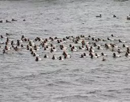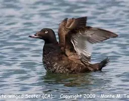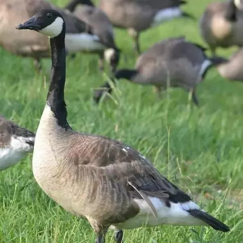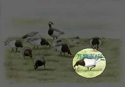 黑雁(学名:Branta bernicla)体长56-61厘米,翼展110-120厘米,体重1100-1700克 ,寿命13年。是中等体型的深灰色雁。嘴和脚黑,尾下羽白色。灰色的颈部两侧具特征性白色图纹,有时在前颈形成半领。胸侧多近白色纹。雏鸟颈部无白斑,但翅上多白色横纹。为典型的冷水性海洋鸟,耐严寒,喜栖于海湾、海港及河口等地。少与其他种类混群。近水面低飞,涨大潮时栖于沿海港湾。觅食于沿海草场。主要以青草或水生植物的嫩芽、叶、茎等为食,也吃根和植物种子,冬季有时还吃麦苗等农作物的幼苗。迁徙时常集成大群,白天飞翔,傍晚降落到湖泊等水域休息和觅食,常常发出高叫声,极为嘈杂。分布于北极圈以北、北冰洋沿岸及其附近岛屿。冬季迁到中国东北及东部沿海地区,最南至福建沿海和台湾,在中国为冬候鸟。