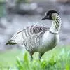 黑雁雌雄相似。头、颈、胸黑褐色,背和两翅灰褐色,颈的两侧备有一白色横斑,在颈前后断开,未能联成颈环。翅小覆羽灰色,翼尖黑色,尾上覆羽白色,尾黑褐色,上腹灰褐色,两胁较淡,下腹和尾下覆羽白色,雌雄相似。嘴、跗蹠、脚和爪黑褐色。