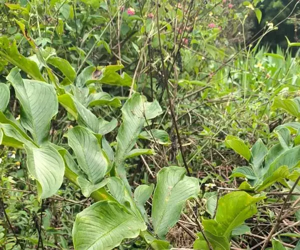 大野芋 Schott)是天南星科大野芋属常绿草本植物。根茎倒圆锥形直立;叶丛生,…