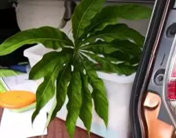 块茎扁球形,直径7.5-25厘米,顶部中央多少下凹,暗红褐色;颈部周围生多数肉质根及纤维状须根。叶柄长45-150厘米,基部粗3-5厘米,黄绿色,光滑,有绿褐色或白色斑块;基部膜质鳞叶2-3,披针形,内面的渐长大,长7.5-20厘米。叶片绿色,3裂,I次裂片具长50厘米的柄,二歧分裂,II次裂片二回羽状分裂或二回二歧分裂,小裂片互生,大小不等,基部的较小,向上渐大,长2-8厘米,长圆状椭圆形,骤狭渐尖,基部宽楔形,外侧下延成翅状;侧脉多数,纤细,平行,近边缘联结为集合脉。