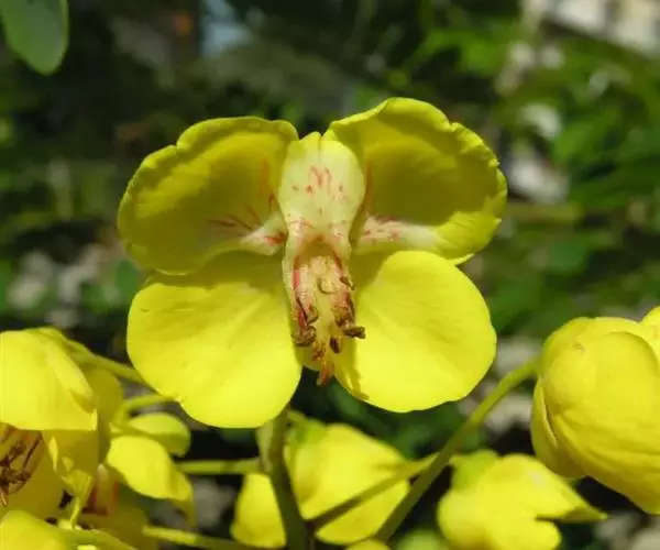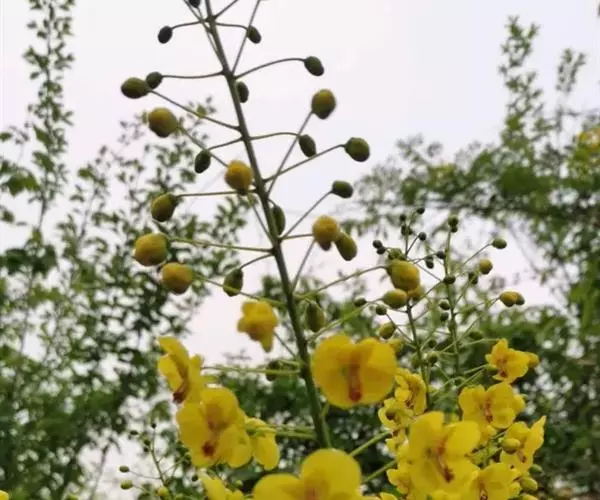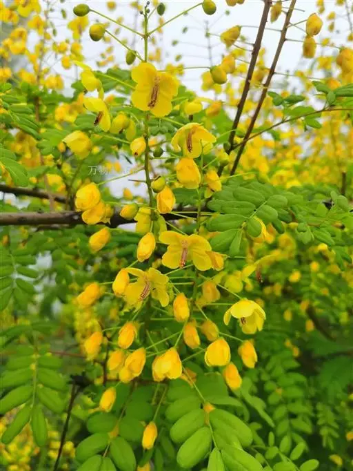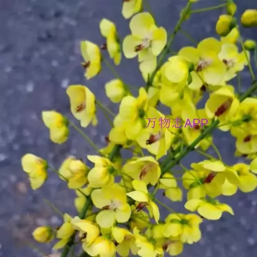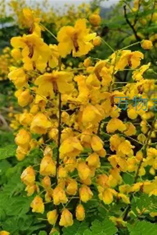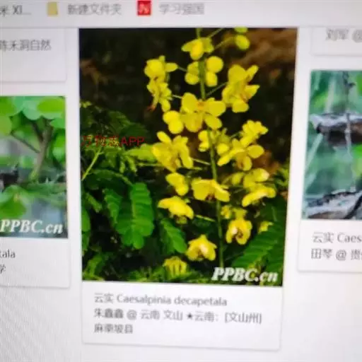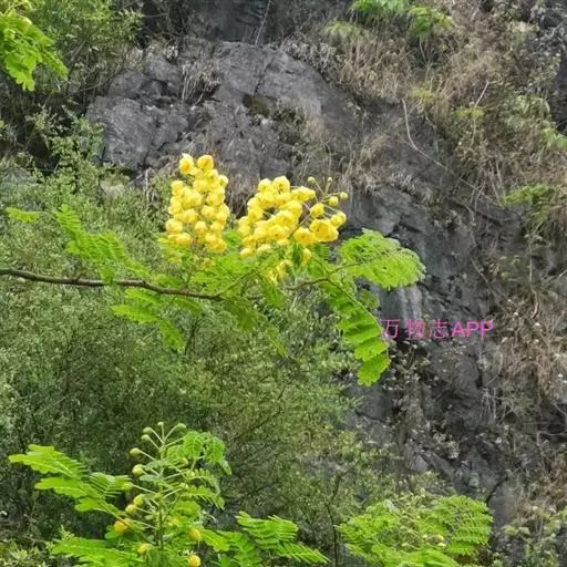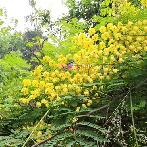 云实又名云英,草云母,臭草,羊石子草,老虎刺尖,杉刺,水皂角,虎头刺,倒挂刺,阎王刺,爬墙刺,猫爪刺,斗米虫树,倒搭刺,山油皂,黄花刺。藤本;树皮暗红色;枝、叶轴和花序均被柔毛和钩刺。二回羽状复叶长20-30厘米;羽片3-10对,对生,具柄,基部有刺1对;小叶8-12对,膜质,长圆形,长10-25毫米,宽6-12毫米,两端近圆钝,两面均被短柔毛,老时渐无毛;托叶小,斜卵形,先端渐尖,早落。总状花序顶生,直立,长15-30厘米,具多花;总花梗多刺;花梗长3-4厘米,被毛,在花萼下具关节,故花易脱落;萼片5,长圆形,被短柔毛;花瓣黄色,膜质,圆形或倒卵形,长10-12毫米,盛开时反卷,基部具短柄;雄蕊与花瓣近等长,花丝基部扁平,下部被绵毛;子房无毛。荚果长圆状舌形,长6-12厘米,宽2.5-3厘米,脆革质,栗褐色,无毛,有光泽,沿腹缝线膨胀成狭翅,成熟时沿腹缝线开裂,先端具尖喙;种子6-9颗,椭圆状,长约11毫米,宽约6毫米,种皮棕色。花果期4-10月。