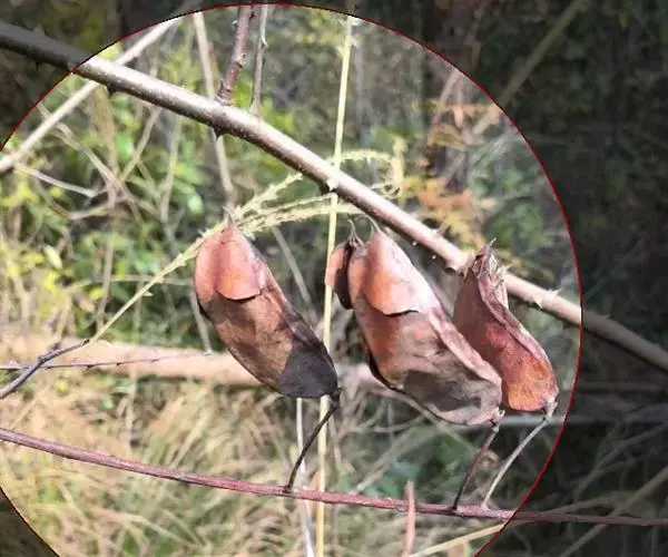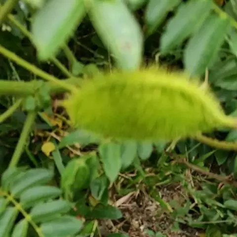 种子长圆形,长约1cm,宽约6mm。外皮棕黑色,有纵向灰黄色纹理及横向裂缝状环圈。种皮坚硬,剥开后,内有棕黄色子叶2枚。气微,味苦。