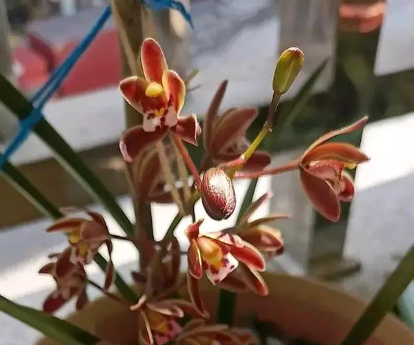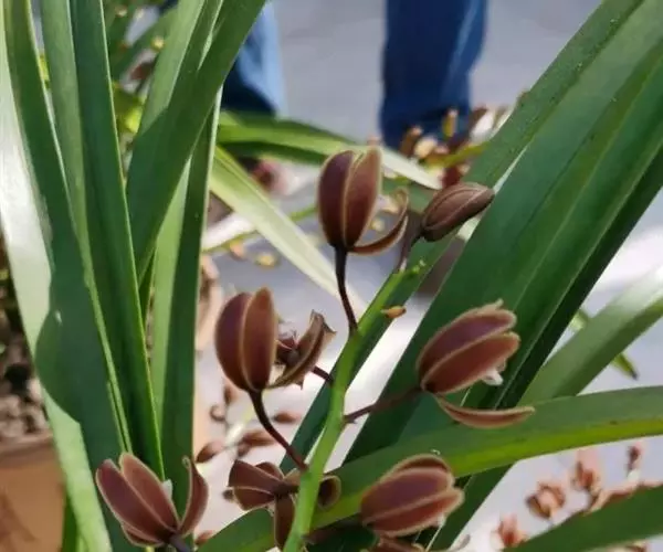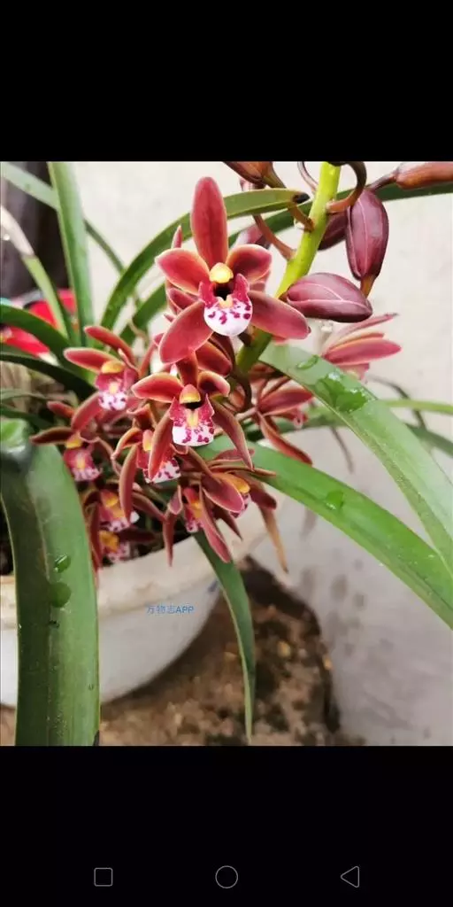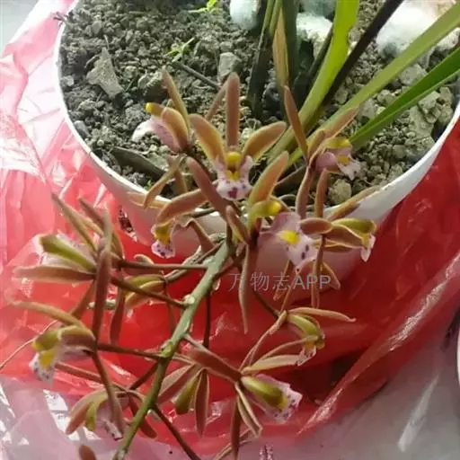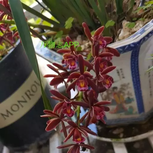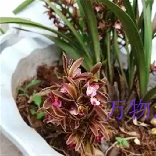 变种: 变种:台兰 台兰(Cymbidium floribundum var.pumilum),又称小蜜蜂兰、蒲兰、金棱边、蜂子兰、串兰、方兰。台兰与原种多花兰甚相似,但较矮小,叶片短而窄,假鳞茎也较小。叶片光亮,叶脉也不像多花兰那样明显。花茎长15~30厘米,直立或向斜上方生长,挺直,有花15~40朵,花稍小,红褐色,无香味。花期4~5月份。中国栽培较普及,在日本栽培较多。分布于浙江、福建、广东、广西、湖北、湖南、江西、四川、云南、贵州等省区。