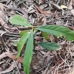 植物形态 叶2~4枚,近直立,矩圆状倒披针形,革质,长22~27 cm,宽3.5~4.7 cm,先端急尖或钝,具明显的中脉,基部明显具柄;叶柄纤细,长15~23 cm,宽4~5 mm,腹面有槽,关节位于近中部。