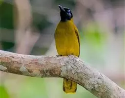 黑冠黄鹎:体长18-21厘米,是一种中等体型偏黄色鹎。整个头、颈、颏、喉黑色,头顶有显著直立的羽冠,…