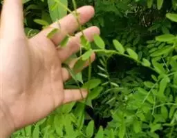 偶数羽状复叶顶端卷须有2-3分支或单一,托叶2深裂,裂片披针形,长约0.6厘米;小叶3-6对,近互生,椭圆形或卵圆形,长1.5-3厘米,宽0.7-1.7厘米,先端钝,具短尖头,基部圆形,两面被疏柔毛,叶脉7-8对,下面中脉凸出,被灰白色柔毛。