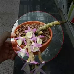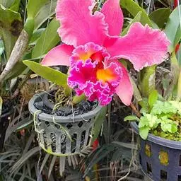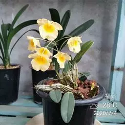 通常选用四壁多孔的塑料或陶瓷花盆,用碳根、泥炭藓、树皮块、木炭块等作盆栽材料。根据兰苗的大小,选择不同规格的花盆,但不宜用大盆栽小苗口上述栽好材料在使用前必需在清水中浸泡1天以上备用。盆底要多垫大瓦片或碎砖块,深度至盆底约1/3处,然后将兰苗放于盆中央,并在一旁插一细竹竿以固定兰苗,再填入其他栽培材料,注意根与根之间用材料隔开。