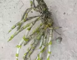 盆裁3年以上的植株或部分秋石斛茎的顶部或基部长有小植株时,可以进行切芽繁殖。选择具有3-4片叶,2-3条根,根长4-5厘米的小植株,从母株上切下,用草木灰或70%的代森锰锌处理伤口,将苗植入盆中即可。汪意要浅植。栽培2年后一般可开花成为商品花。