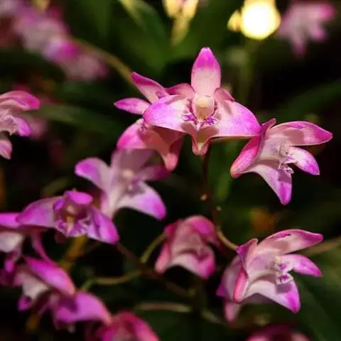 华石斛:茎直立或弧形弯曲而上举,细圆柱形,偶尔上部膨大呈棒状,不分枝,具多个节。叶数枚,二列,通常…