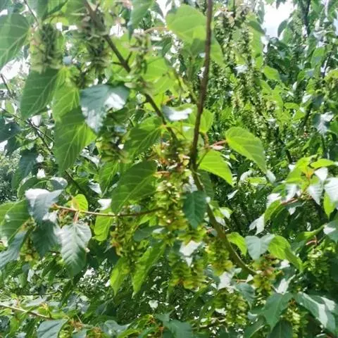 翅果扁平,淡黄褐色,长约3厘米,小坚果中央部凹入,为细长圆形,宽约4毫米,具有疏细脉纹,翅长约1.8厘米,宽约7毫米,翅开展为70度左右;果柄细长,达2厘米,稍具微毛,黄褐色。花期4-5月,果期9月。