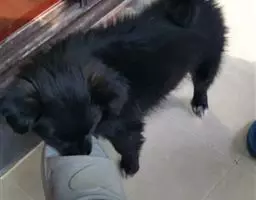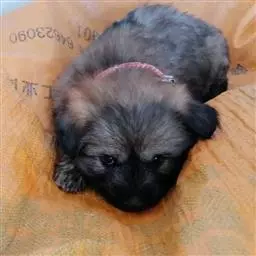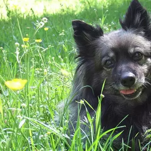 荷兰毛狮犬耳朵小,呈三角形,在头部较高的位置,且竖立;口吻中等长度,既不粗糙也不尖细,…