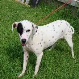 大麦町犬(Dalmatian,也叫斑点狗),原产地南斯拉夫。平静而警惕、轮廓匀称、强健、肌肉发达、且活泼,毫不羞怯,表情聪明伶俐,听话易训,感觉敏锐,警戒心强,容易与小孩相处。大麦町犬具有极大的耐力,而且奔跑速度相当快。后躯有力,拥有平滑且清晰的肌肉。大麦町因为拥有出色的奔跑与撕咬能力,所以也经常被用作比赛犬。大麦町犬出生时是白色的,斑点能改变,小狗时身上出现轻微的斑点,随着逐渐长大,斑点也变得明显,并成为特有的标志。