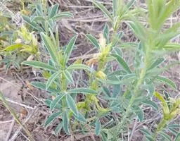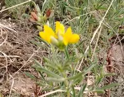 一年生草本。根部有丰富的根瘤;茎直立或匍匐,长30-80厘米,茎和分枝均有棱,被黄色长柔毛,后变无毛。叶通常具小叶2对;托叶长2-4厘米,具纵脉纹,被毛;叶柄基部抱茎,长5-10厘米,被毛;小叶纸质,卵状长圆形至倒卵形,长2-4厘米,宽0.5-2厘米,先端钝圆形,有时微凹,具小刺尖头,基部近圆形,全缘,两面被毛,边缘具睫毛;侧脉每边约10条;叶脉边缘互相联结成网状;小叶柄长2-5毫米,被黄棕色长毛;花长约8毫米;苞片2,披针形;小苞片披针形,长约5毫米,具纵脉纹,被柔毛;萼管细,长4-6厘米;花冠黄色或金黄色,旗瓣直径1.7厘米,开展,先端凹入;翼瓣与龙骨瓣分离,翼瓣长圆形或斜卵形,细长;龙骨瓣长卵圆形,内弯,先端渐狭成喙状,较翼瓣短;花柱延伸于萼管咽部之外,柱头顶生,小,疏被柔毛。荚果长2-5厘米,宽1-1.3厘米,膨胀,荚厚,种子横径0.5-1厘米。花果期6-8月。