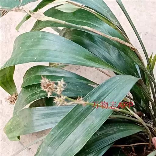 根状茎匍匐,粗壮,木质。秆侧生,高20-80厘米,粗1-3毫米,三棱形,幼时或多或少被短柔毛,基部具淡褐色无叶的鞘。叶基生和秆生;基生叶数枚丛生,长于或短于杆,狭椭圆形、椭圆形、椭圆状披针形、椭圆状倒披针形至椭圆状带形,长10一35厘米,宽2-5厘米,基部渐狭,顶端渐尖,两面光滑或下面粗糙,有3条隆起的脉及多数细脉,有时具隔节;叶柄由不甚明显至长达30厘米,稍扁而对折,无毛,有时具叶基下延所形成的狭翅;秆生叶退化呈佛焰苞状,生于秆的下部或中部以下,褐色 纸质,无毛。苞片与秆生叶同型,但顶端具线形苞叶,通常短于支花序。圆锥花序复出,具3至数枚支花序;支花序圆锥状,轮廓为三角状卵形,长2-3.5厘米,宽1.5-3厘米,单生或双生;支花序柄坚挺,三棱形,长4-8厘米,密被短柔毛;支花序轴锐三棱形,密被短柔毛和褐色斑点;小苞片鳞片状,披针形,长4-5毫米,褐白色有深褐色斑点,无毛或基部疏生短柔毛。小穗10余个至20余个,全部从囊状、内无花的支先出叶中生出,开展,两性,雄雌顺序,长圆状圆柱形,长5-14毫米;雄花部分的轮廓为线状披针形,短于雌花部分,少有二者近等长,具少数雄花;雌花部分具2-7朵花。雄花鳞片卵状披针形,长3-3.5毫米,膜质,淡褐色;雌花鳞片卵形,长2-2.5毫米,顶端渐尖,膜质,中间黄绿色,有褐色斑点,具3条脉,两侧褐色,幼时边缘疏生纤毛。果囊椭圆形,三棱形,长3-4毫米,纸质,淡黄绿色,密生褐色斑点腹面具2侧脉,无毛,基部几无柄,顶端渐渐收缩成中等长的喙,喙稍短于果囊的1/2喙口微凹。小坚果椭圆形,三棱形,长1.5-2.2毫米,成熟时褐色;花柱基部不增粗或微增粗,柱头3个。花果期5-11月。