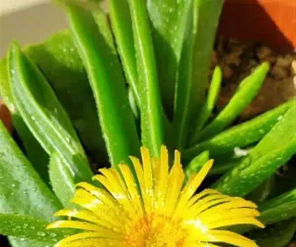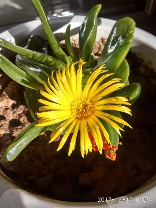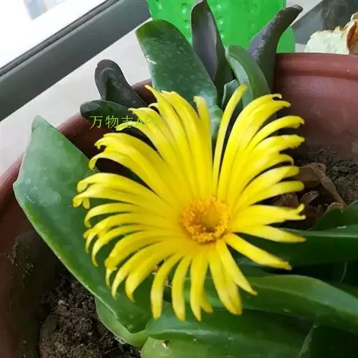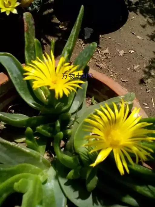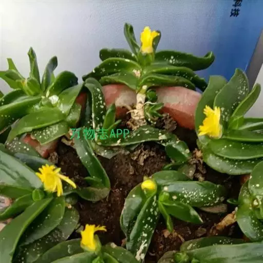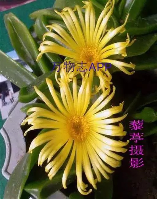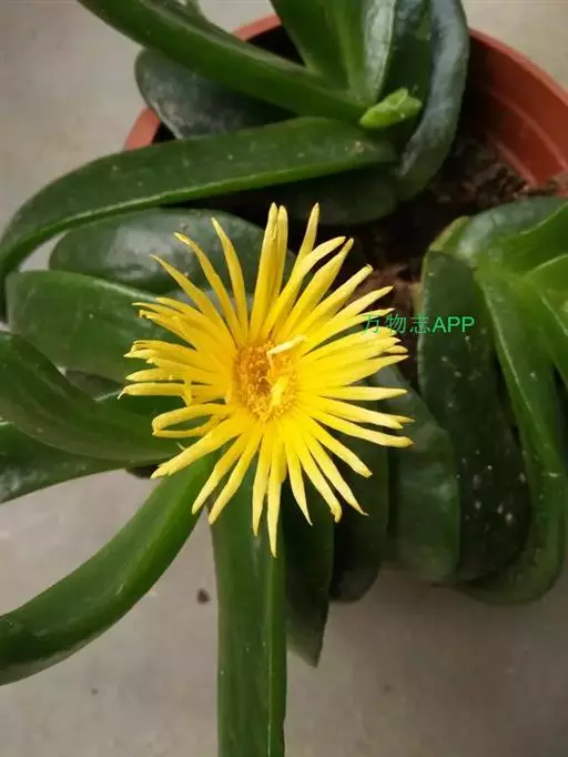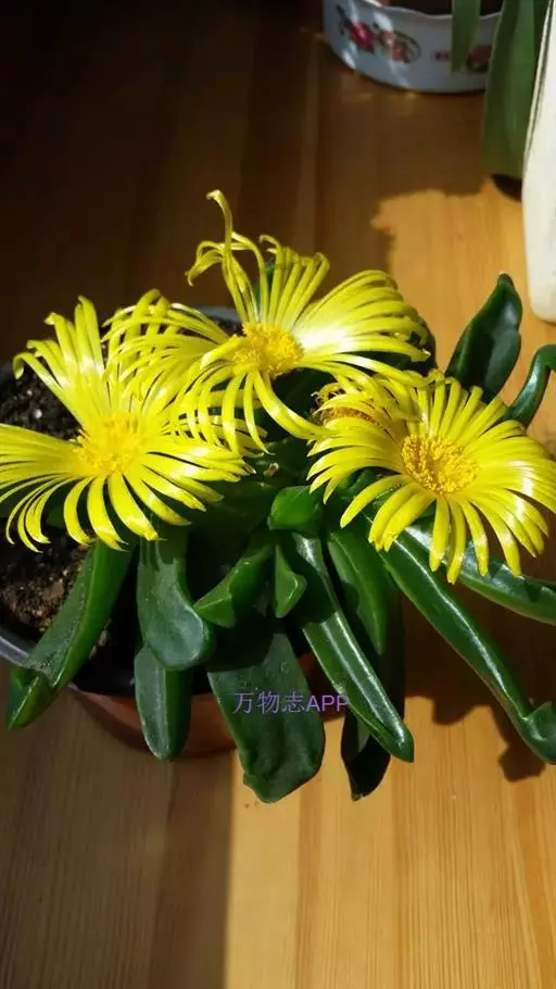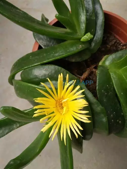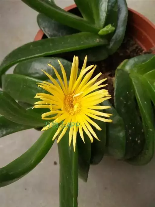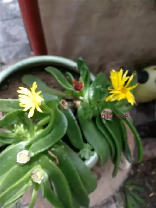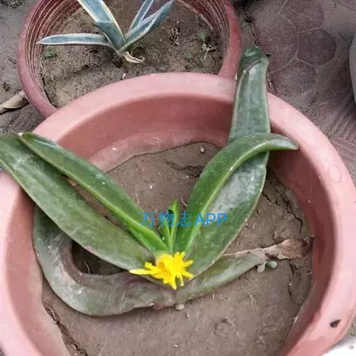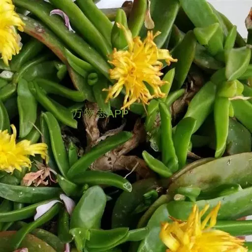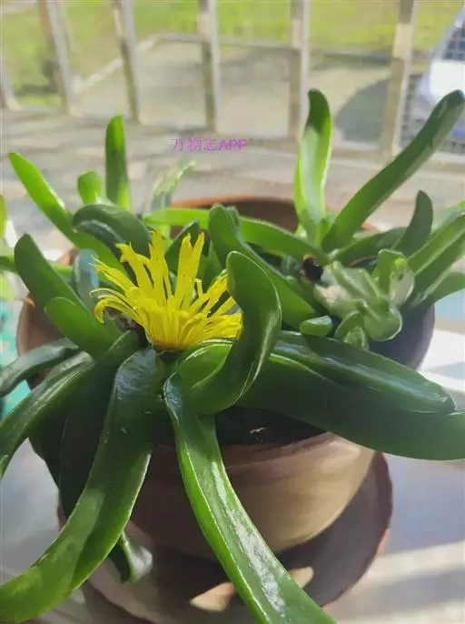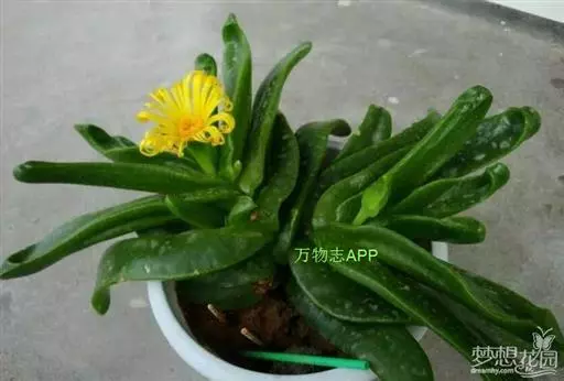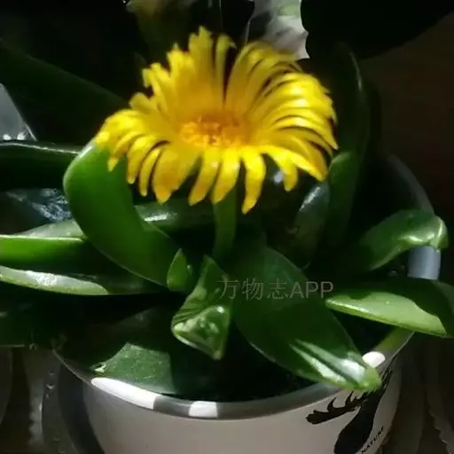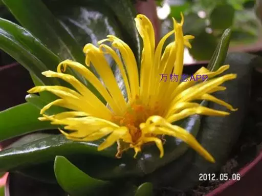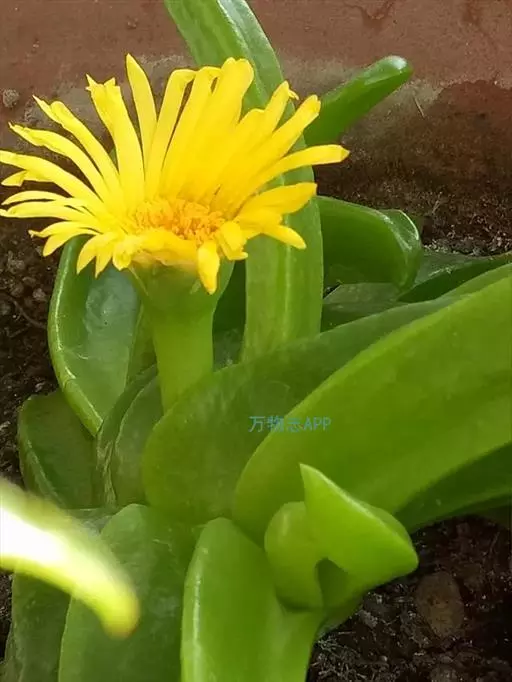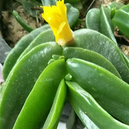 形态特征:茎短或无。叶肉质舌状,对生2裂,长约7CM,鲜绿色,平滑有光泽,叶端略向外反转。秋、冬开花,花自叶丛抽出,具短梗,金黄色。