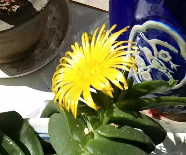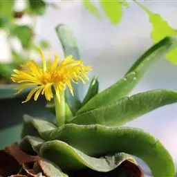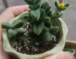 佛手掌又叫舌叶花,主要是指它的肉质叶很象舌头,而整个形态有点象佛手而由此得名。佛手掌原产南非,同一类的品种约有50多种。它的肉质叶嫩绿、半透明而有光泽,开金黄色小花,如果叫翡翠佛手掌更为恰切。用小盆栽植,馈亲友、陈设于书桌、几案,小巧玲珑花形奇特,很具观赏价值,令人喜爱赞不绝口是一种栽培十分容易的盆栽花卉,很适宜广大养花爱好者种植。本人是个爱好者养殖佛手掌已近10个春秋,实践证明这个花儿,它能适应咱这里的气候条件,夏天,虽然已进入半休眠状,但它还能开花确实难能可贵。