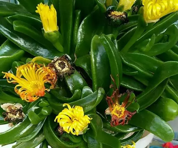 佛手掌 佛手掌的家庭养护应特别重视越冬和过夏期间的管理。当环境气温超过32℃,植株将进入半休眠状态,此时应将盆栽植株搬放至阴凉处,停肥控水,保持盆土略呈干燥,注意环境通风透气,待秋凉后再恢复正常的水肥供应。冬季应保持棚室温度不低于10℃,维持盆土始终处于湿润状态,改浇水为喷水,停止施肥,确保其能安全过冬。家庭繁殖通常于9月至10月间进行扦插,扦插基质可用干净的湿沙,待切口收干后再将其插入沙床中,维持20℃左右的生根适温,一个月后即可生根,待其新根长至2厘米至3厘米长时,再行移栽上盆。 采前管理