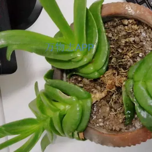 佛手掌为番杏科舌叶花属多肉类植物,学名为Glottiphyllumuncatum,因其肉质叶长6-12厘米,末端呈舌状稍卷曲,叶色鲜绿,叶面光洁透明,叶片紧抱轮生于短茎上,酷似佛手状而得名。