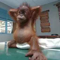 猩猩也叫人猿,灵长目人科 的一属,与猴子最大不同的地方就是没有尾巴,能用手或脚拿东西。马来语和印尼语叫做Orang utan,意思是“森林中的人”。与人类十分相近,与人类基因相似度达96.4%。活动的习性通常不用声音沟通,通常有好几个个体会在同一个区域活动,但彼此不干扰,平均寿命大概40年,平均身高大概171~180厘米左右。属猩猩科,是一种非常珍稀的灵长类动物。人们把红毛猩猩称作世界上最憨态可掬的哺乳类动物。红毛猩猩与大猩猩及黑猩猩一起常常被称为“人类最直系的亲属”。