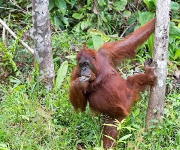 猩猩的种群受到了栖息地破坏的威胁,它们在过去还被随意捕捉到动物园或者卖作宠物。