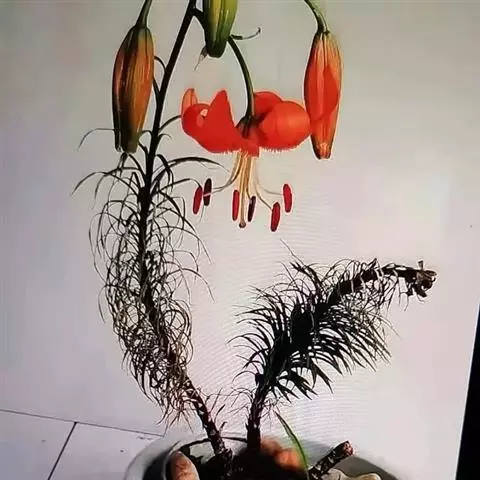 东北百合,别名卷莲花、老哇芋头、轮叶百合、伞蛋花、山丹花,为百合科、百合属多年生球根花卉。鳞茎卵圆形,…