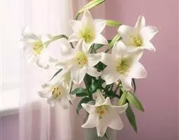 麝香百合是百合科百合属的多年生球根草本植物。鳞茎呈近球形,鳞片白色;茎高45-90厘米,绿色,…