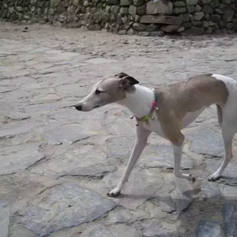 尾巴位置适中,尾巴长,根部粗壮但不卷曲,休息时下垂,运动时,尾巴举起且略弯曲。