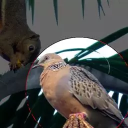 山斑鸠,是鸽形目鸽鸠科斑鸠属鸟类,又名金背斑鸠、棕背斑鸠、山鸠、金背鸠、麒麟斑、麒麟鸠、东方斑鸠、绿斑鸠、山鸽子。山斑鸠颈侧具明显黑白色条纹的块状斑,上体深褐色、具扇贝状斑纹,羽缘棕色,尾羽近黑色,下体多偏粉色。虹膜黄色,喙灰色,脚粉色。山斑鸠是留鸟,在中国常见且分布广泛。此外,还分布于不丹、尼泊尔、巴基斯坦、印度、日本等国。栖息于针阔混交林、季风常绿阔叶林、果园及农耕区,多成对活动于开阔农耕区、村舍、寺院周围及防火林带。取食于地面,主要觅食植物种子、果实、嫩芽等,也吃昆虫。山斑鸠飞翔时鼓翼快速,叫声为反复而低沉的“咕咕咕”声。繁殖期在4-7月,营巢于林中树上,通常一年繁殖2窝,窝卵数2枚,由雌雄亲鸟轮流孵卵,孵化期18~19天。山斑鸠的肉、卵可食,肉入药可益气明目、强筋壮骨,治久病气虚、衰弱无力、两目昏暗等病症。山斑鸠啄食杂草种子,对农田清除杂草有益;但有时也刨食农作物及树的种子。山斑鸠
